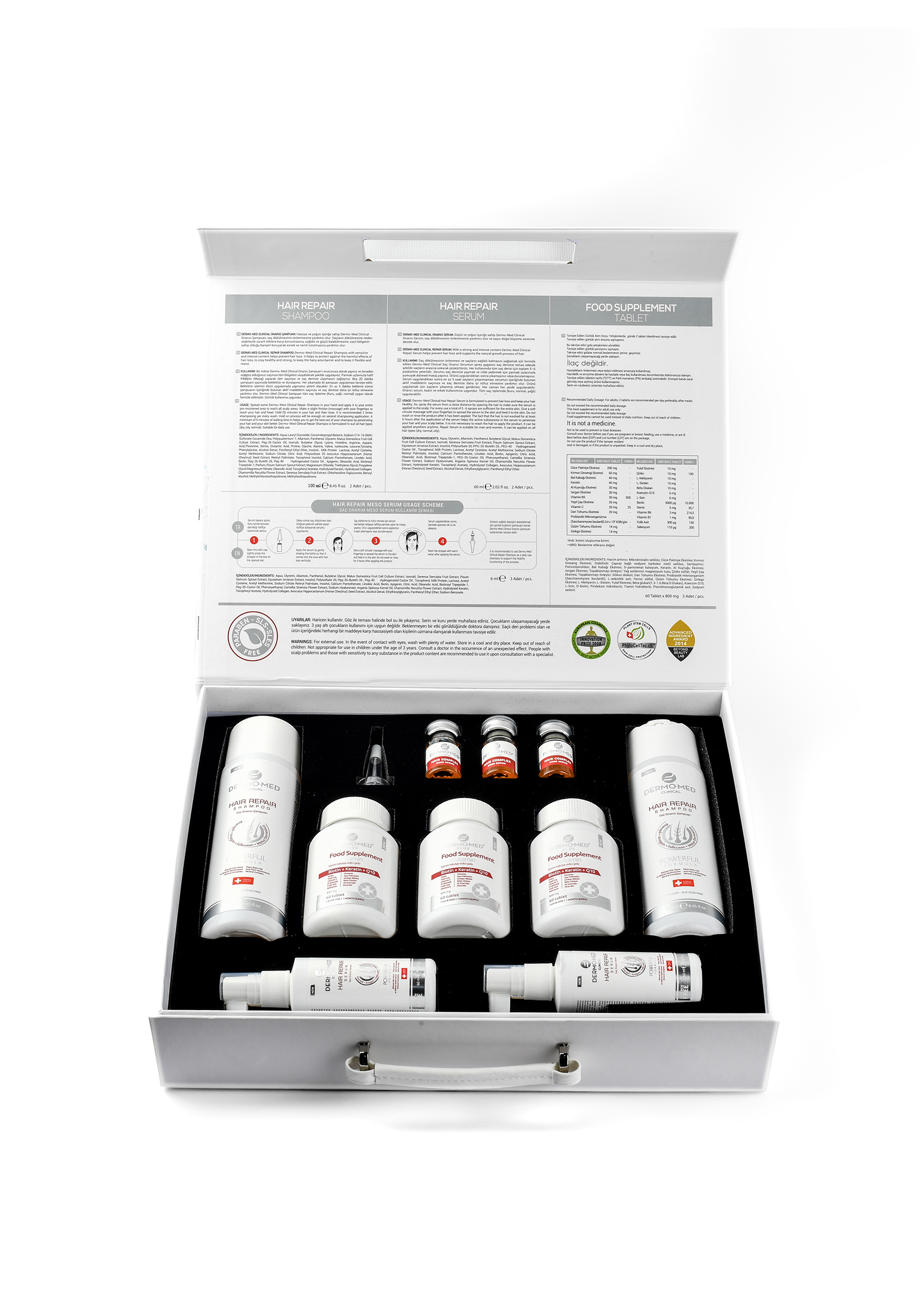 Saç dökülmesiyle vedalaşın, sağlıklı ve güçlü saçlara merhaba deyin! Dermo-Med Saç Bakım Serisi, klinik olarak kanıtlanmış özel formülüyle saç köklerini derinlemesine beslemesine ve onarılmasına yardımcı olur.